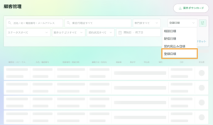 従来の「初回面談日」「相談日」「配信日」に加え、今後は顧客の登録日に応じて、アプローチの優先順位付けや案件の絞り込みができます。