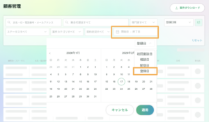 顧客管理における「登録日」フィルタ・ソート機能を追加しました